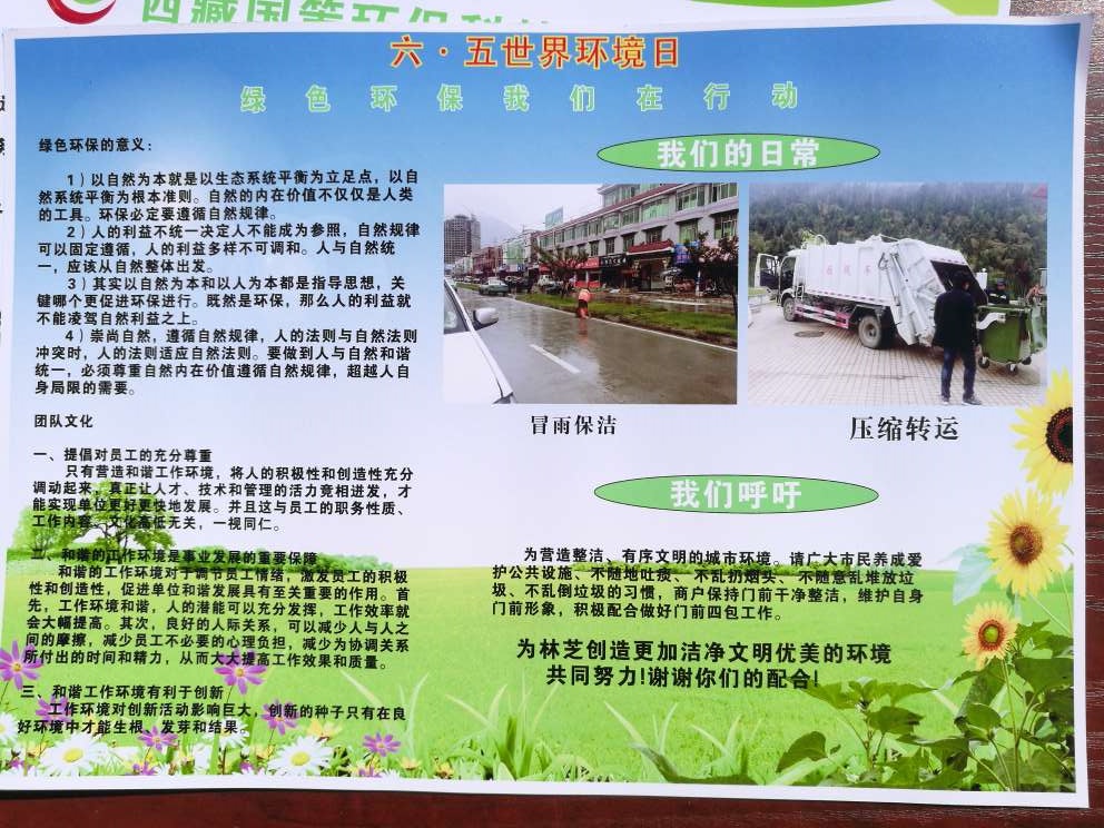 2017年6月5日,在林芝市巴宜區(qū)廈門廣場開展《六五世界環(huán)境日》環(huán)保宣傳活動,——“青山綠水便是金山銀山”,呼吁廣大市民、游客等廣大群眾參與保護雪域高原最后的碧水藍天;此次活動由林芝市環(huán)保局牽頭組織舉辦,參與活動單位:林芝市市政管理局、西藏國策環(huán)保科技股份有限公司林芝分公司、林芝市農(nóng)牧局、林芝市國土資源局、林芝市發(fā)改委、中國華能、巴宜區(qū)環(huán)保局、林芝市商務(wù)局、林芝市科技局、林芝市林業(yè)局等單位?;顒蝇F(xiàn)場也聚集市民、游客等參與環(huán)保宣傳和學(xué)習(xí)環(huán)保知識。